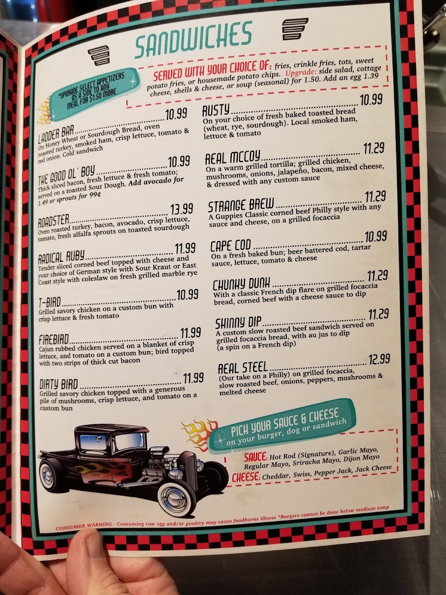 Now, let’s dive into what makes the menu a delightful adventure. Guppies Hot Rod Grille 2.0 specializes in a range of mouthwatering offerings. Their sandwiches are a must-try, with the Cuda and HuliHuli stealing the show at $12.99 and $15.99 respectively. Each bite is a reminder of the perfect balance between flavor and creativity.